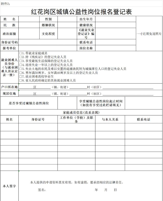 附件2:红花岗区城镇公益性岗位报名登记表