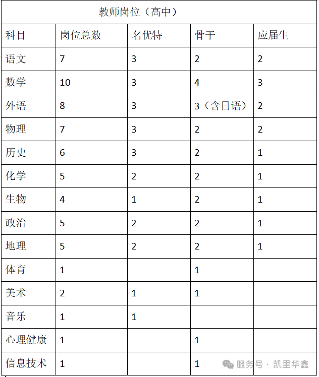 凯里市华鑫高级中学教师招聘启事