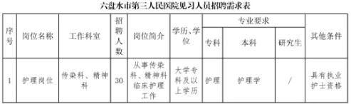 六盘水市第三人民医院招募见习生公告