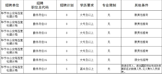 百里杜鹃分局2025年面向社会公开招聘警务辅助人员公告