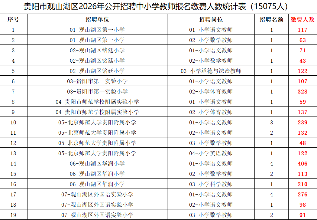 贵阳市观山湖区开招聘中小学教师最终报名人数(15075人)