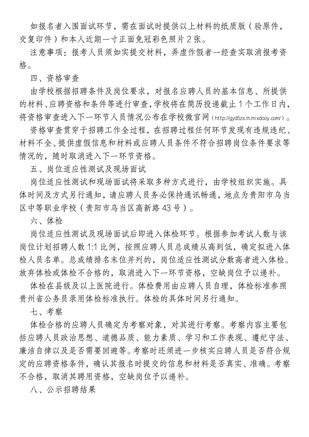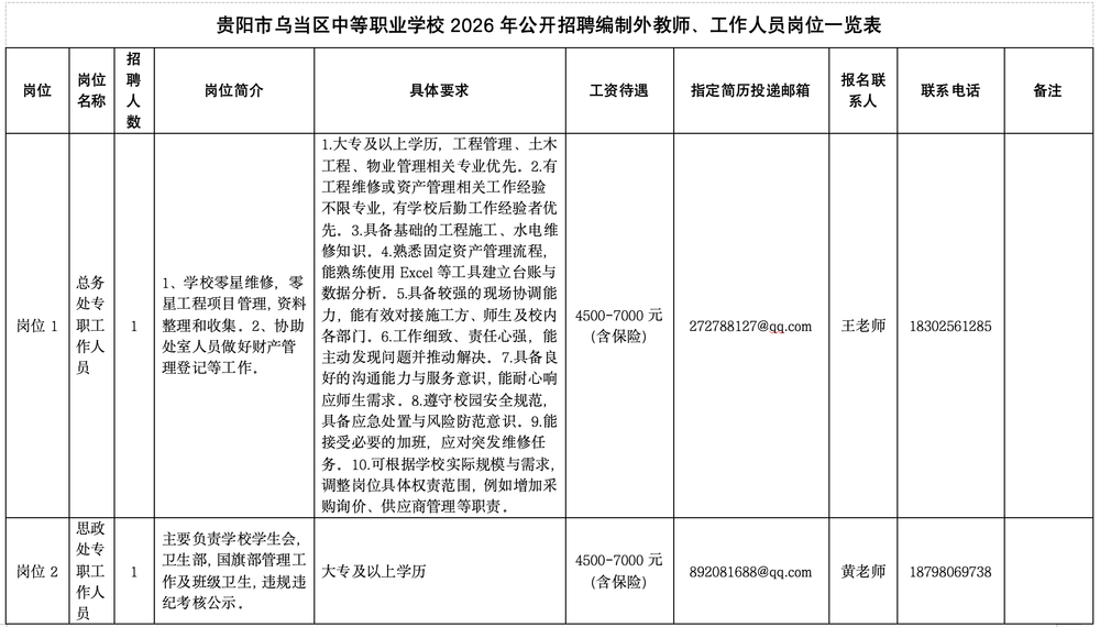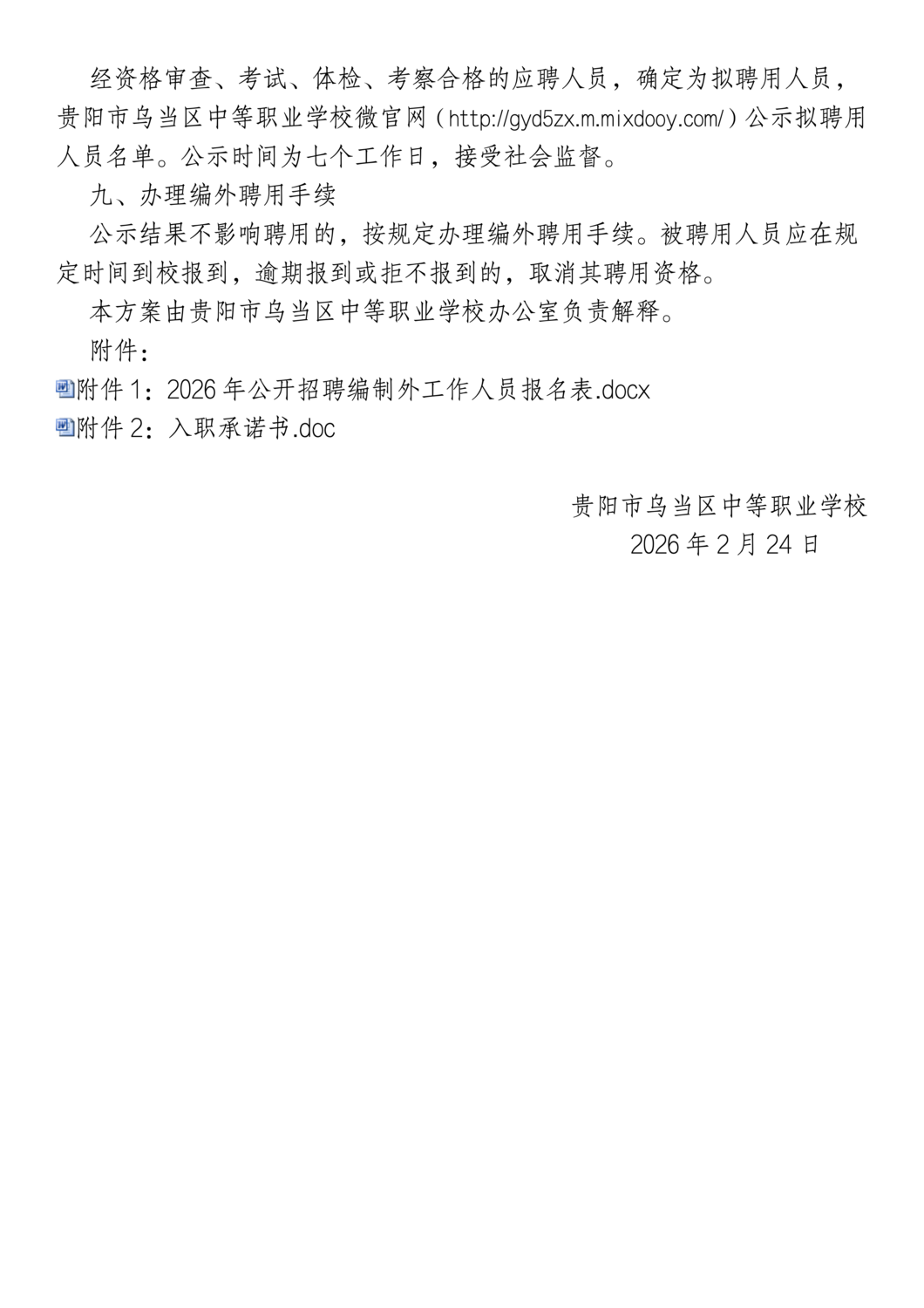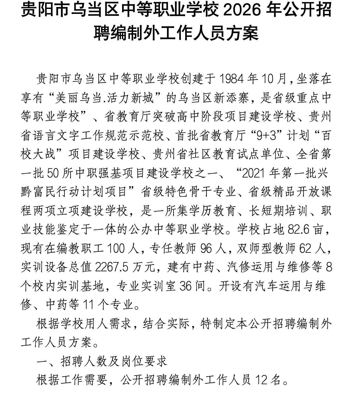 贵阳市乌当区中等职业学校2026年公开招聘编制外工作人员