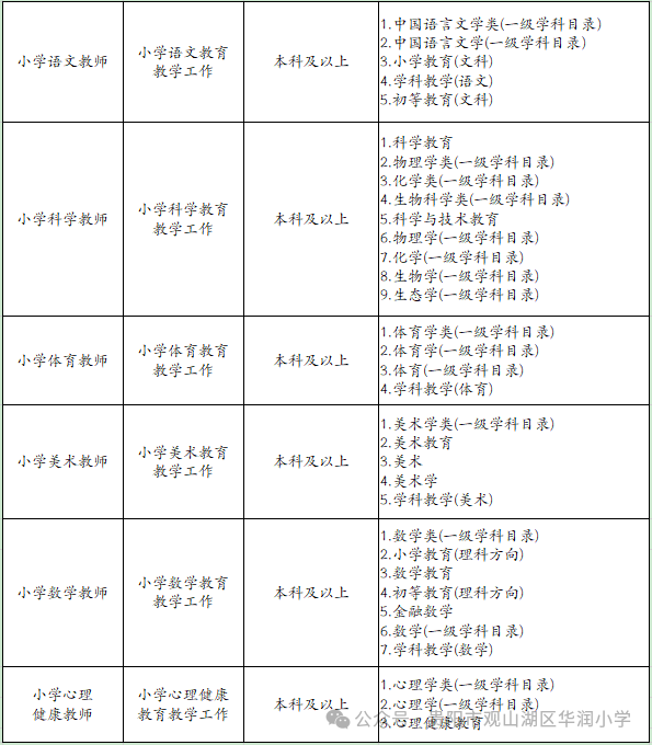 因我校教学需要,拟于2026年1月13日起面向社会公开招聘临聘教师,招聘岗位如下:小学语文、数学、美术、体育、科学、心理健康学科教师。