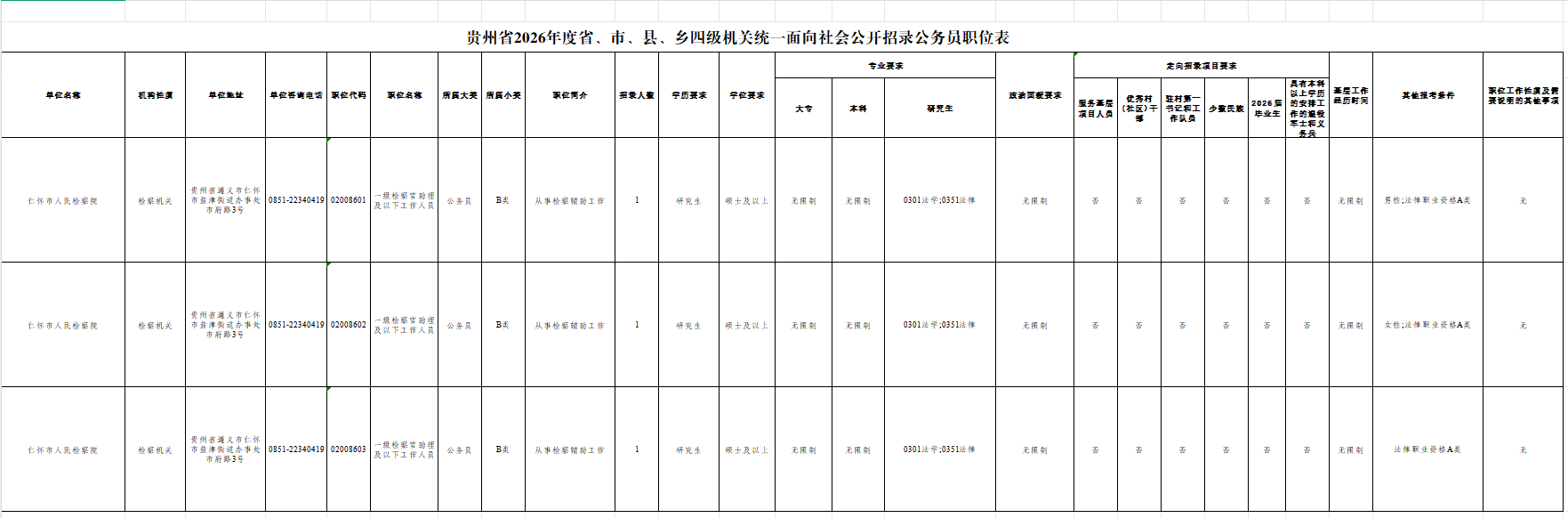2026年度贵州省公务员招录今天开始报名啦~仁怀市人民检察院此次招录